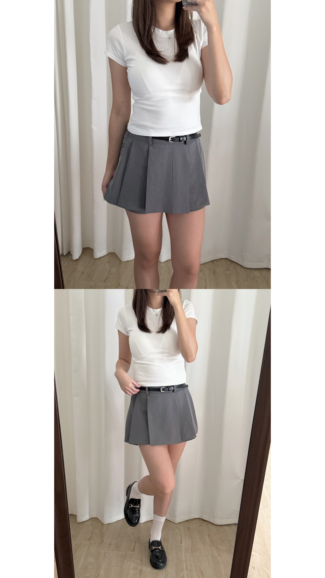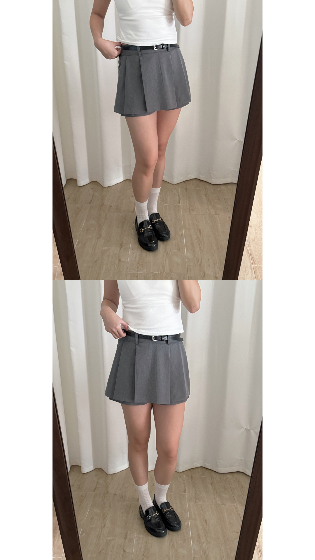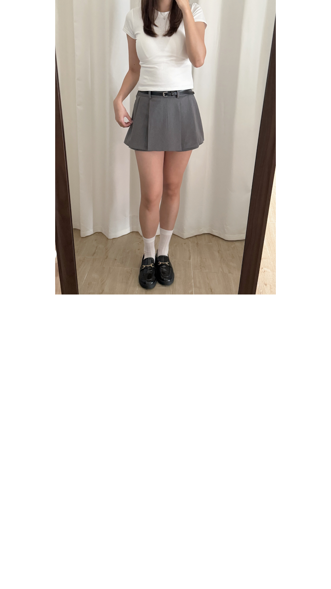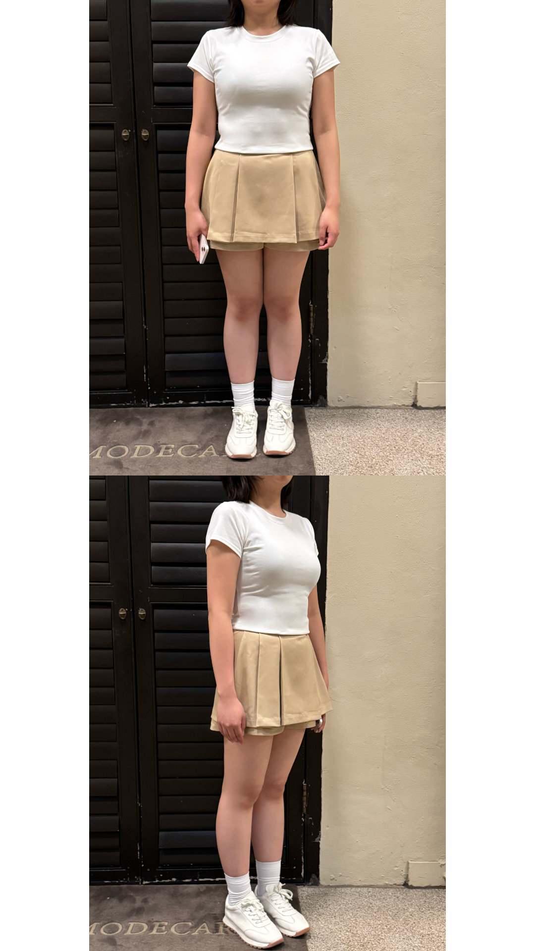 壓褶設計+露褲設計=時尚感upup!✨ 絕對係一條四季百搭的短裙款ദ്ദി /半橡筋腰設計 /前面為壓褶 後面為普通裙型 /露褲設計 穿着更安心 顯腿瘦 /側面有拉鍊開合 Slowly’s pick: caramel>dark grey>white>black