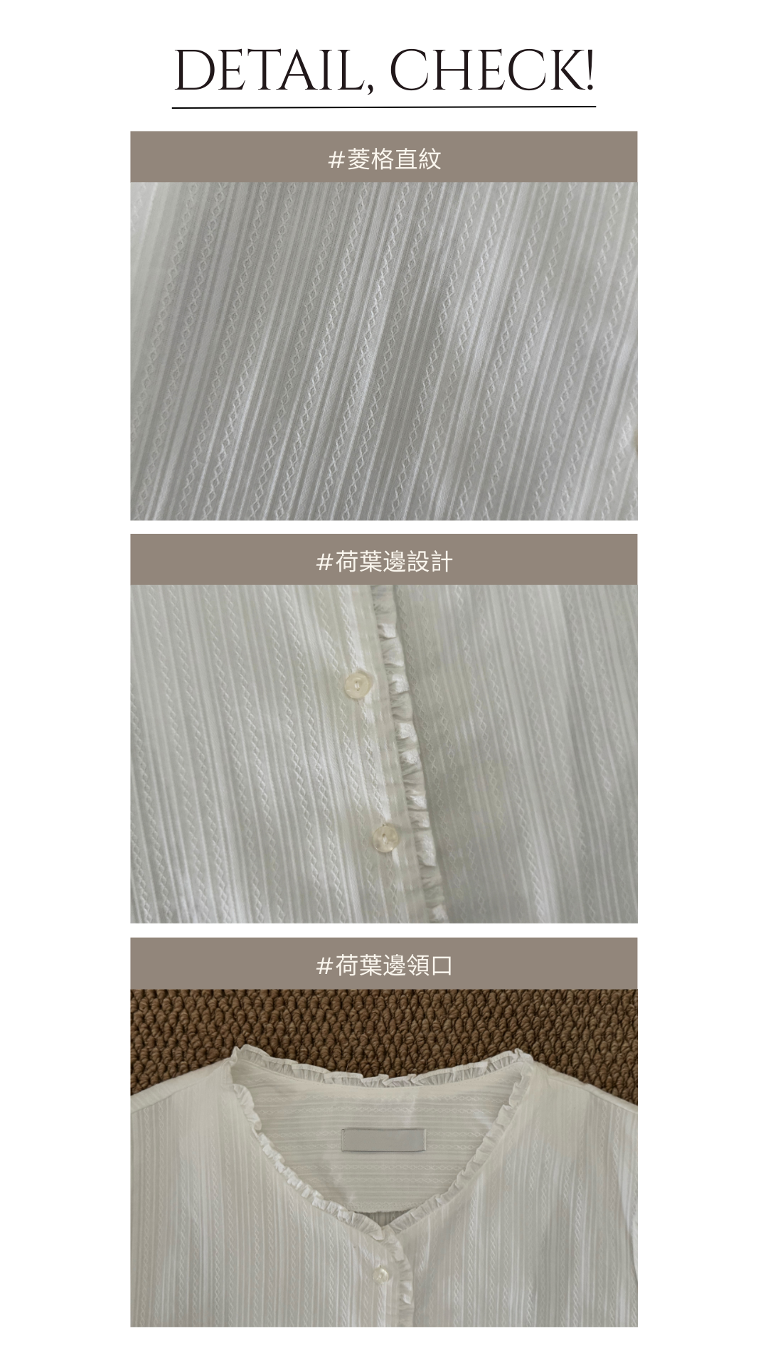 完美展現法式復古感的襯衫🤎 荷葉邊領口令整件襯衫增添了一絲柔美 菱格暗直紋感覺充滿復古魅力 布料好特別 微公主袖的設計帶點俏皮感 可以喺正式場合與休閑場合輕鬆切換 任何場合都適合喔⸝⋆