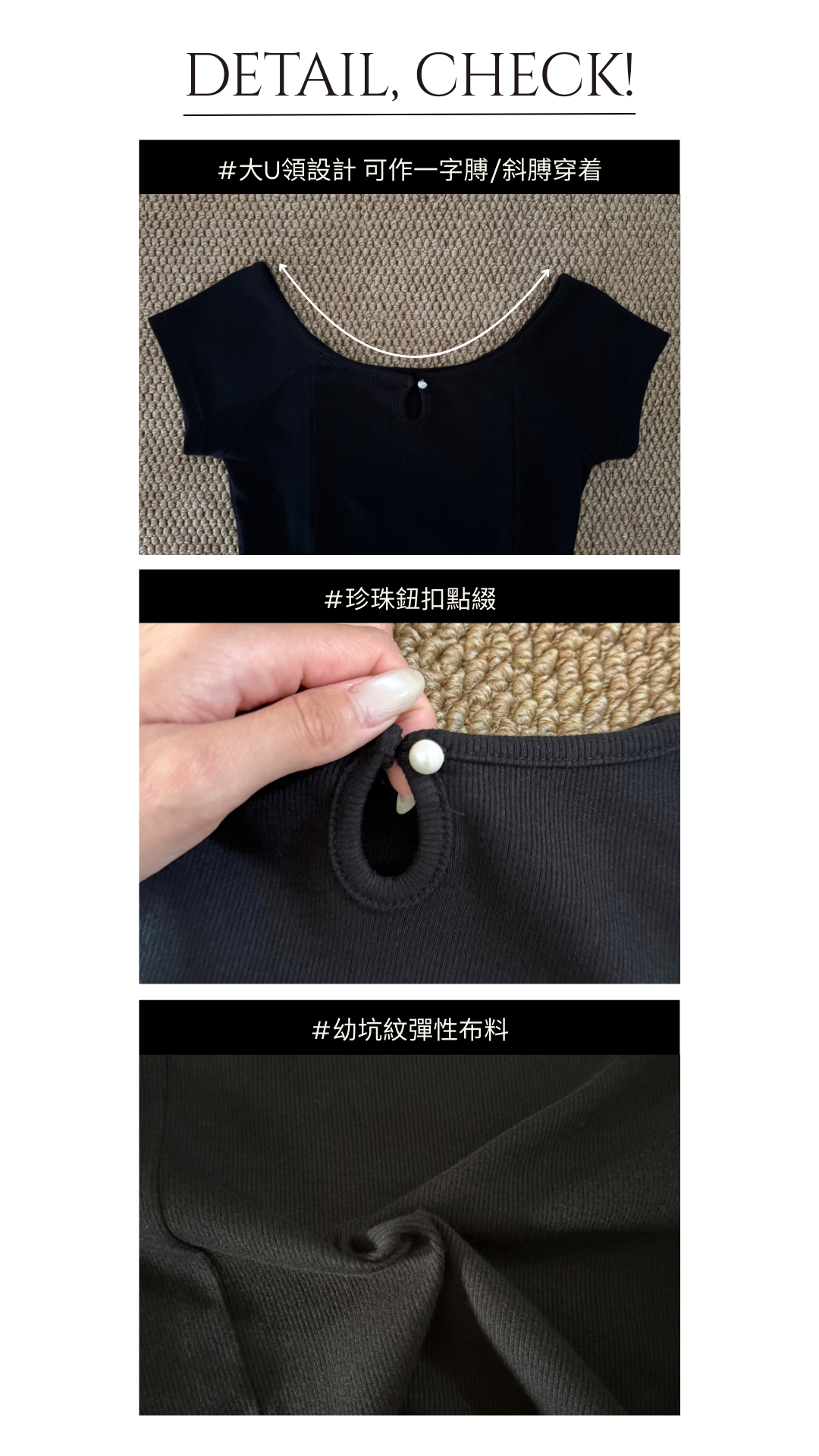 簡約大U領幼坑紋短袖上衣