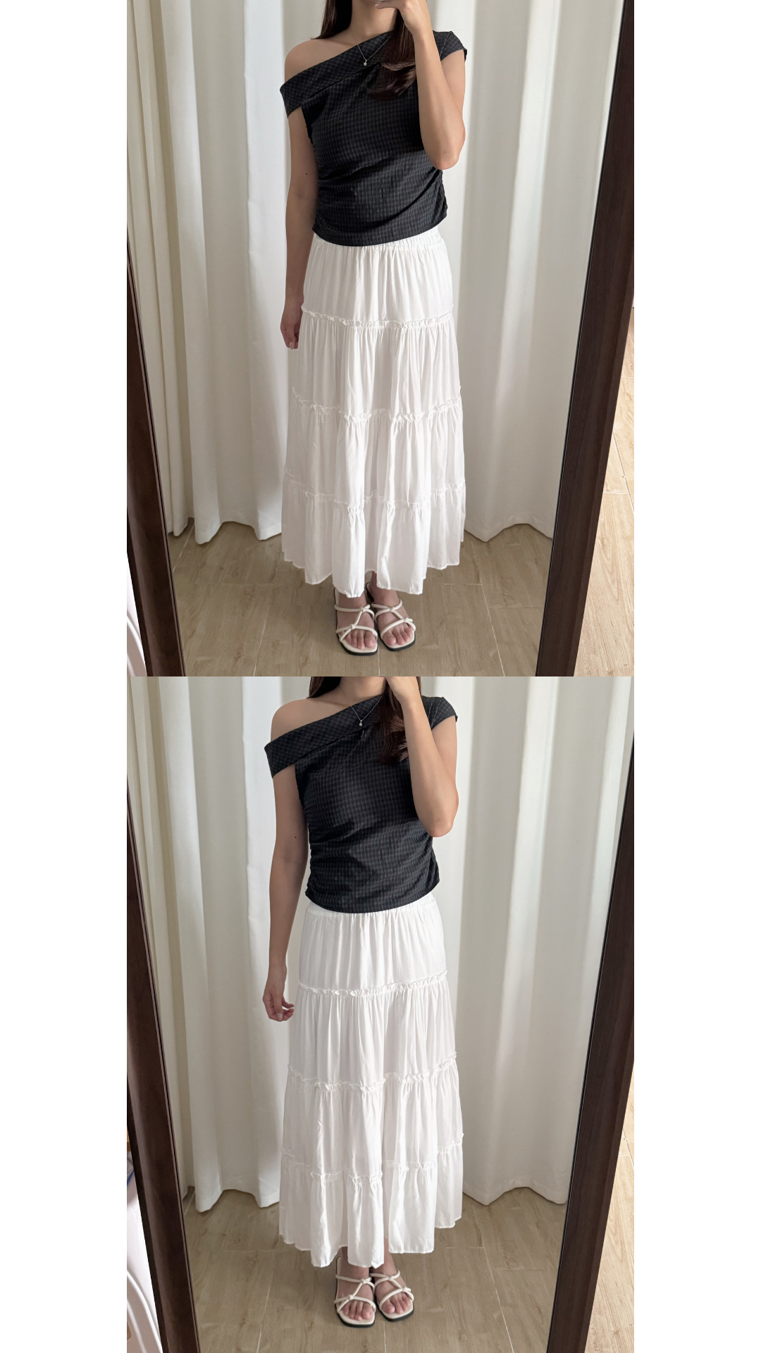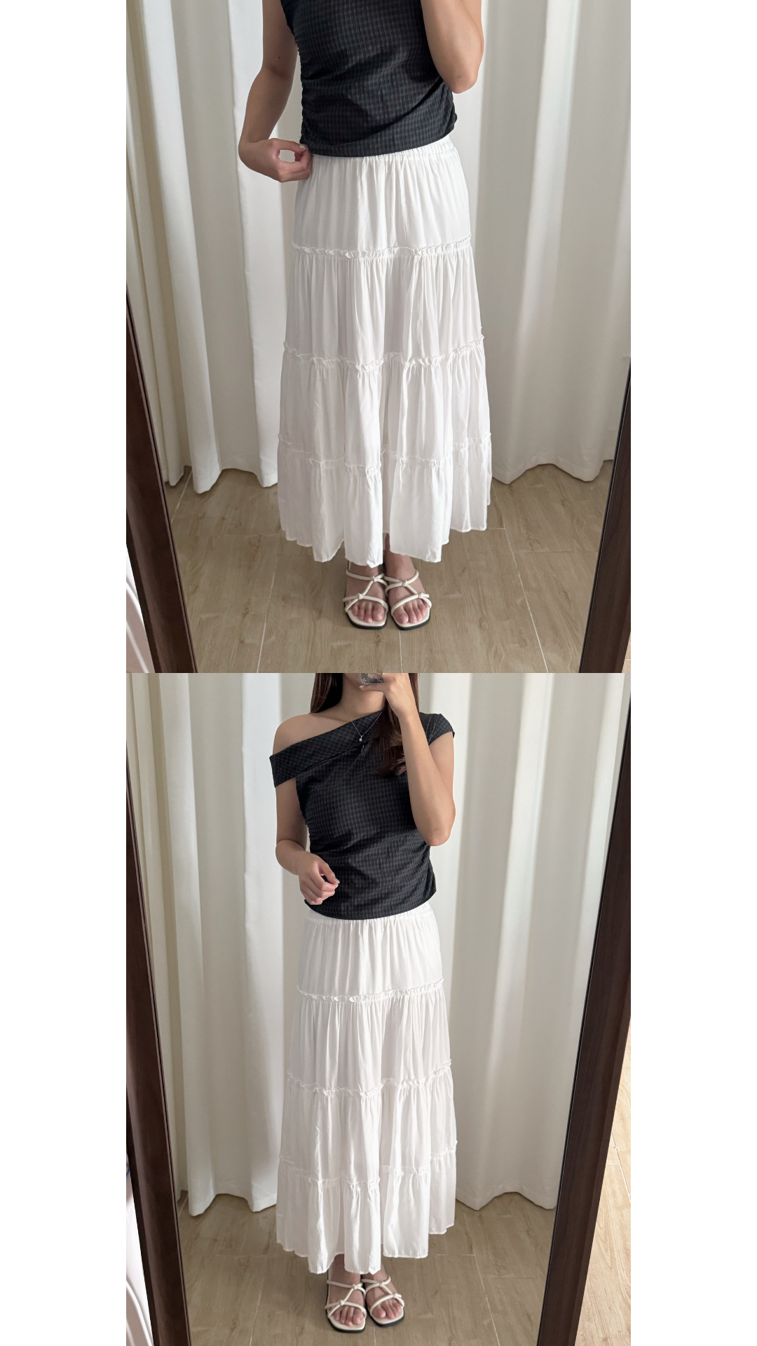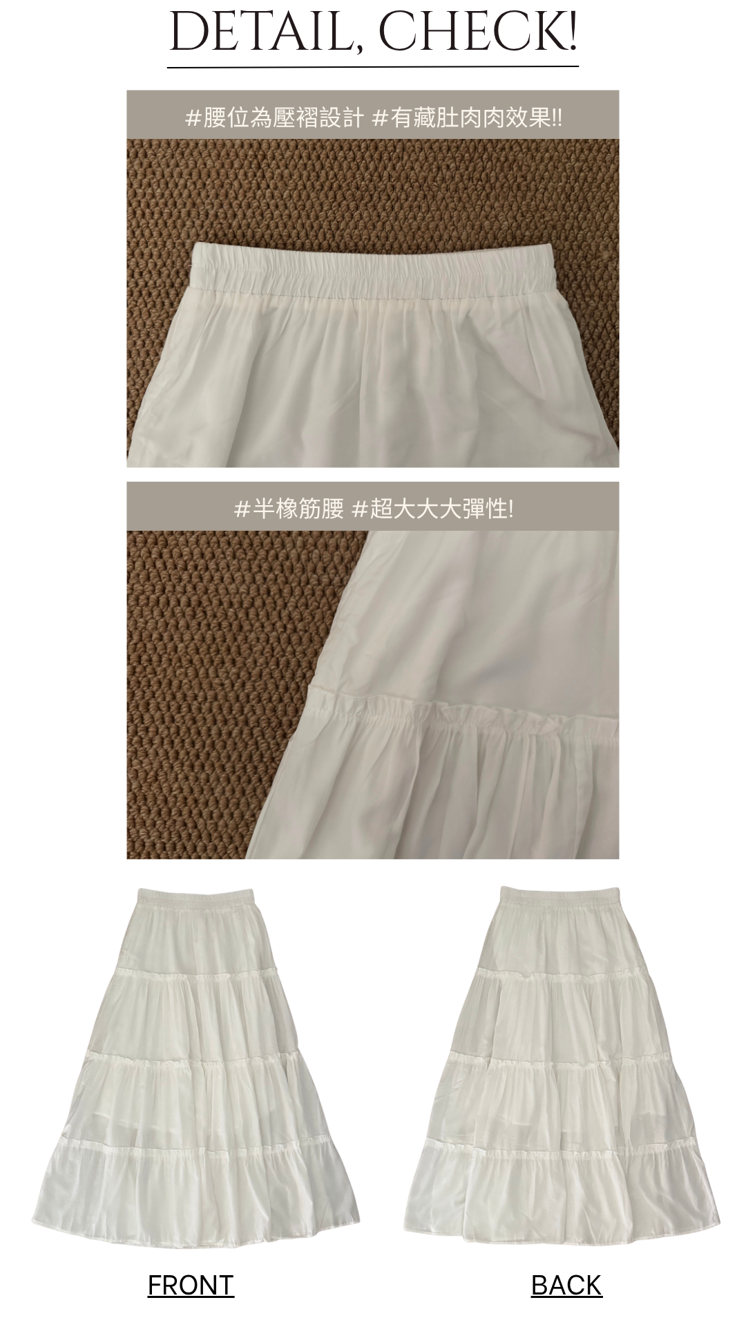 蓬蓬感upup的蛋糕長裙! 絕對將腿部的肉肉都收埋晒啊 每層之間都做咗荷葉邊設計 為整條裙增添亮點✨ 長裙有做內裡喔! 放心白色一點都不透啊🤍 /全橡筋腰設計 /四層蛋糕層次 Slowly’s pick: white>black